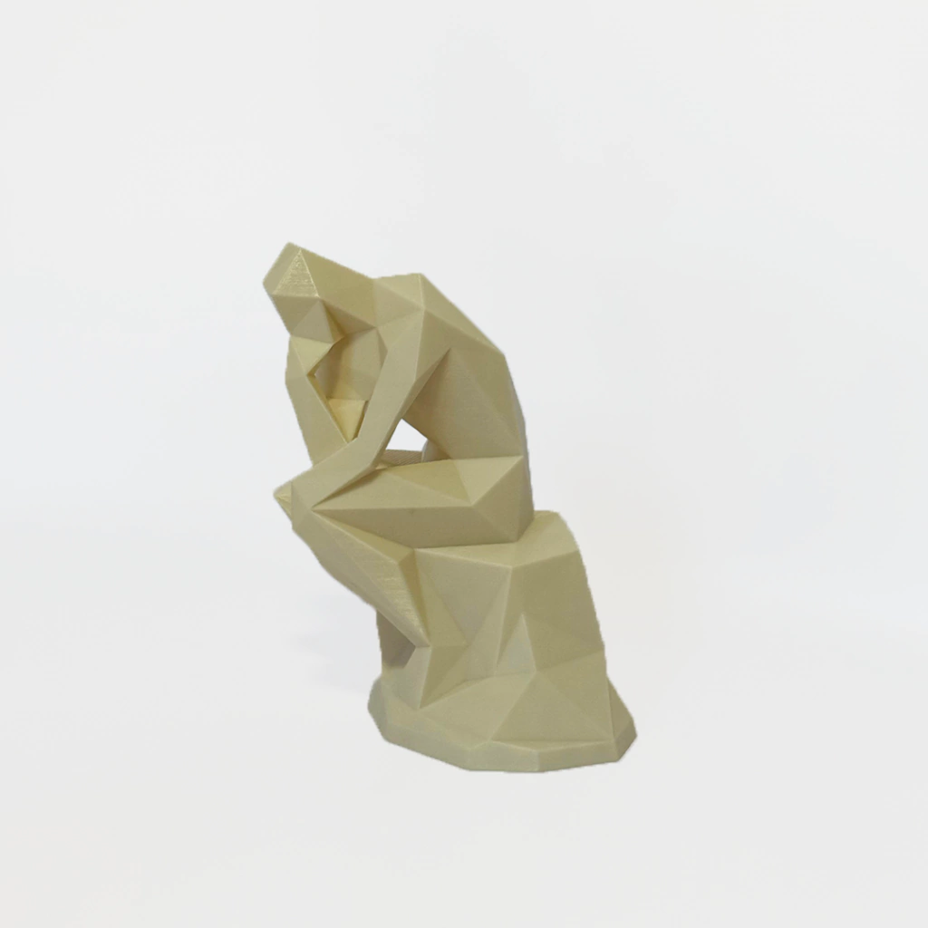 Figura facetada en estilo low poly que representa un momento de introspección y pausa. Cada plano refleja una idea distinta, creando una pieza decorativa con presencia y carácter digital. Ideal para escritorios creativos, bibliotecas o espacios modernos.