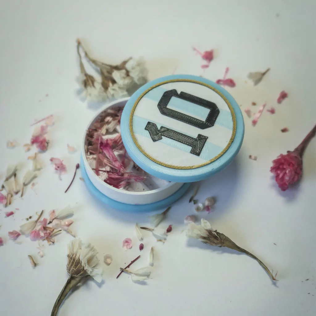 Producto impreso en plástico PLA, 100% reciclable.