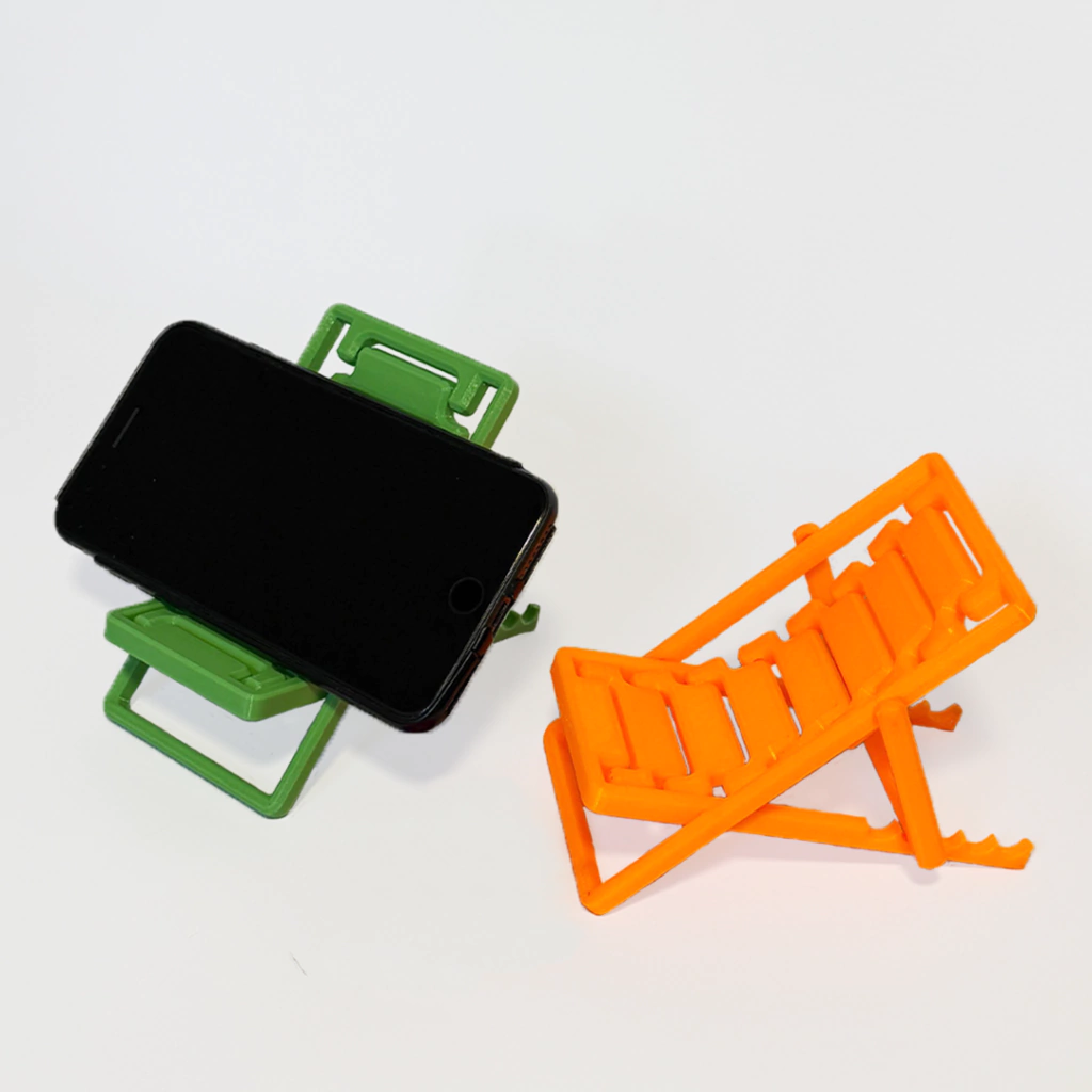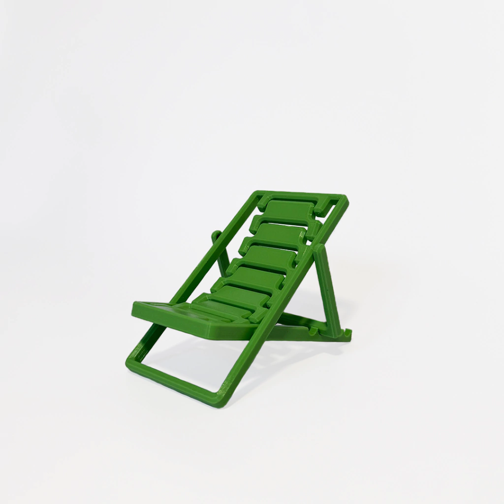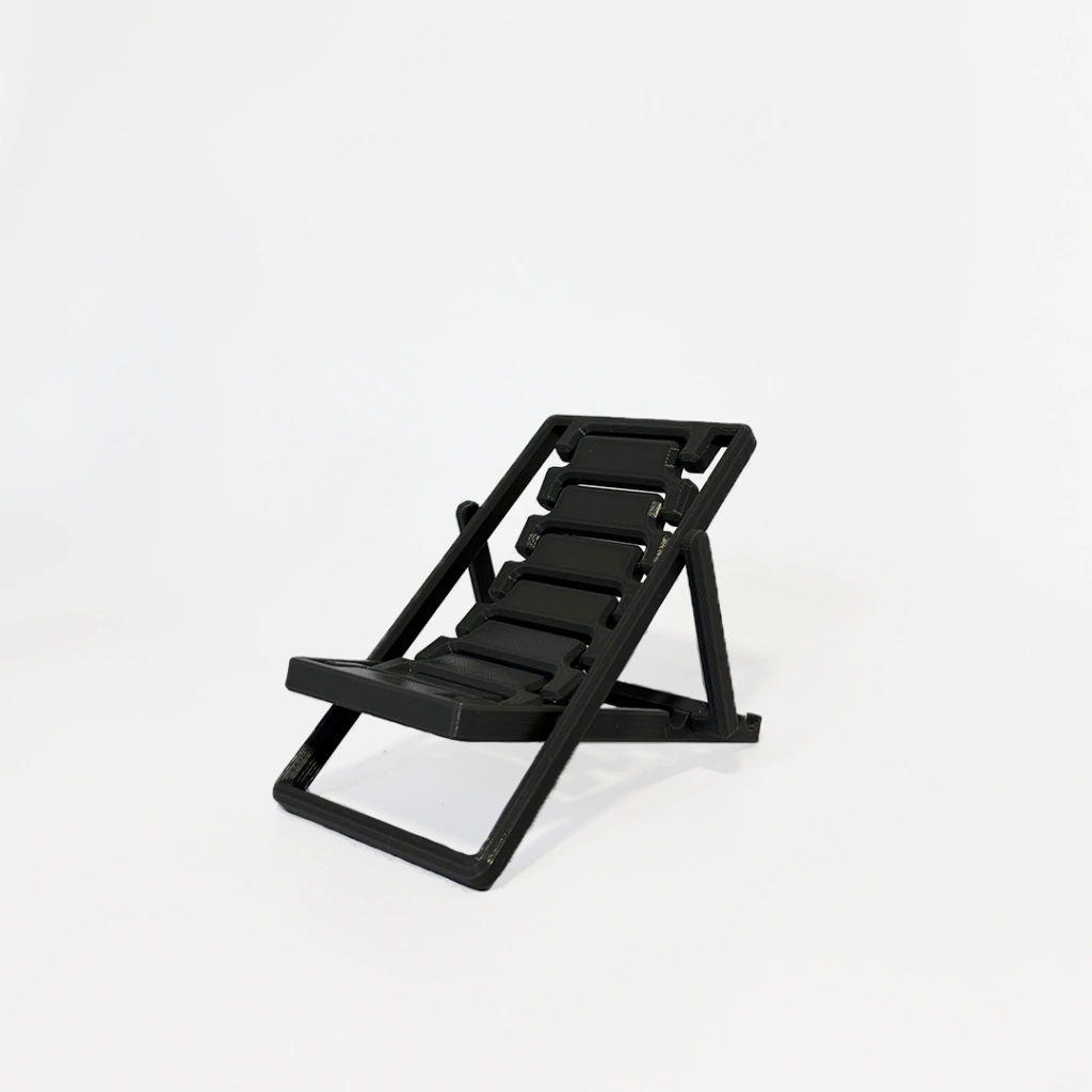 Un soporte con alma de verano. Inspirado en una clásica reposera, este accesorio sostiene tu celular con estilo mientras disfrutás del sol, trabajás o simplemente mirás tus contenidos favoritos. Ideal para escritorios, mesas o llevar a la playa.