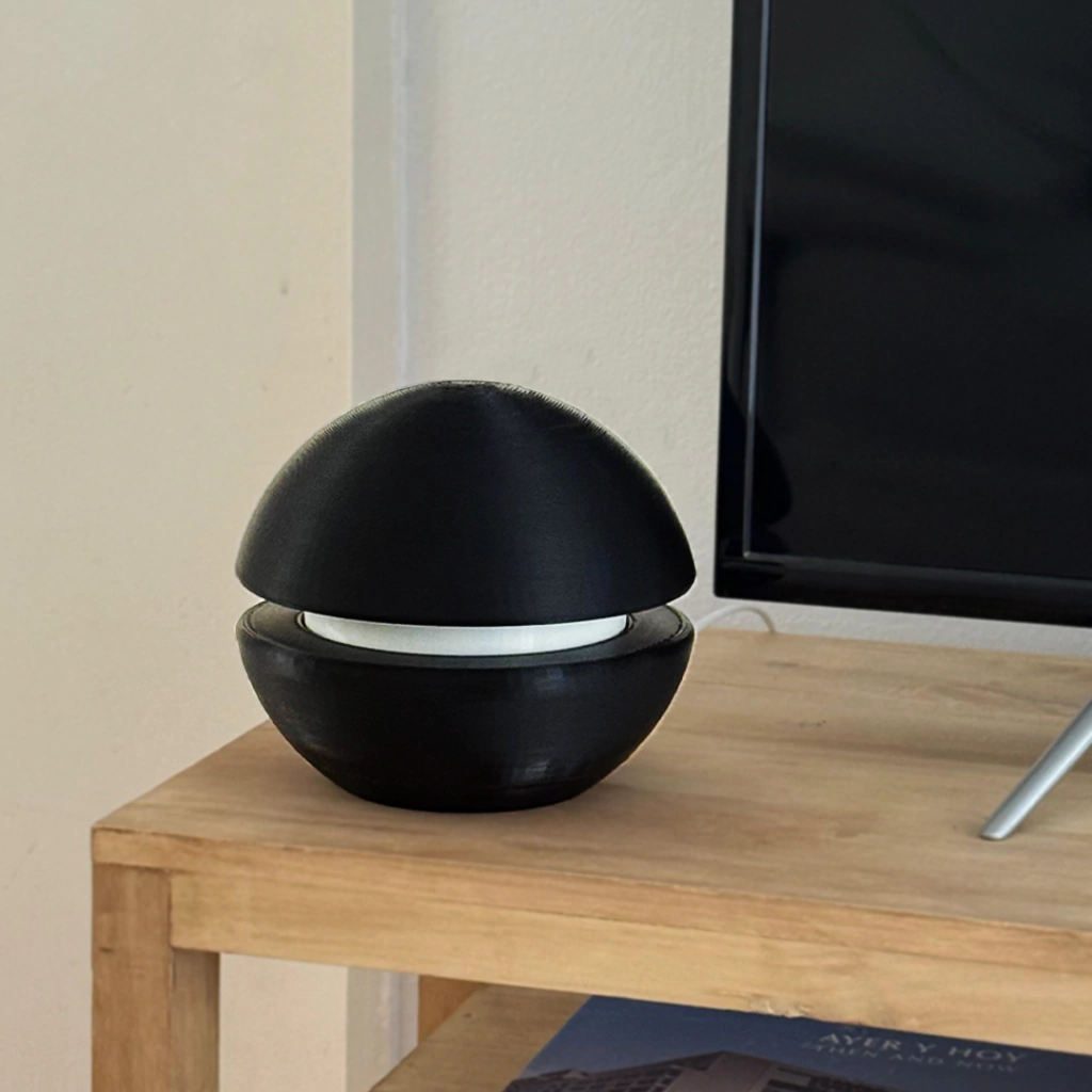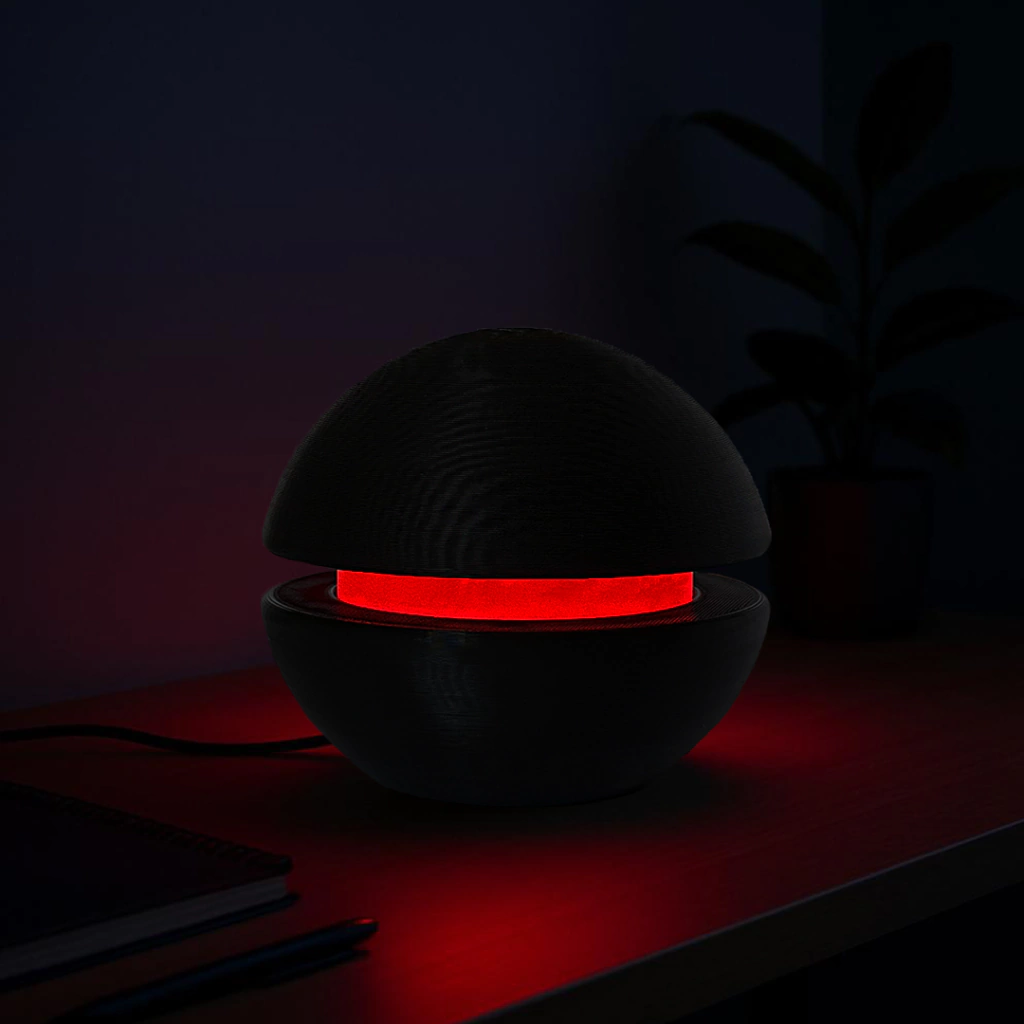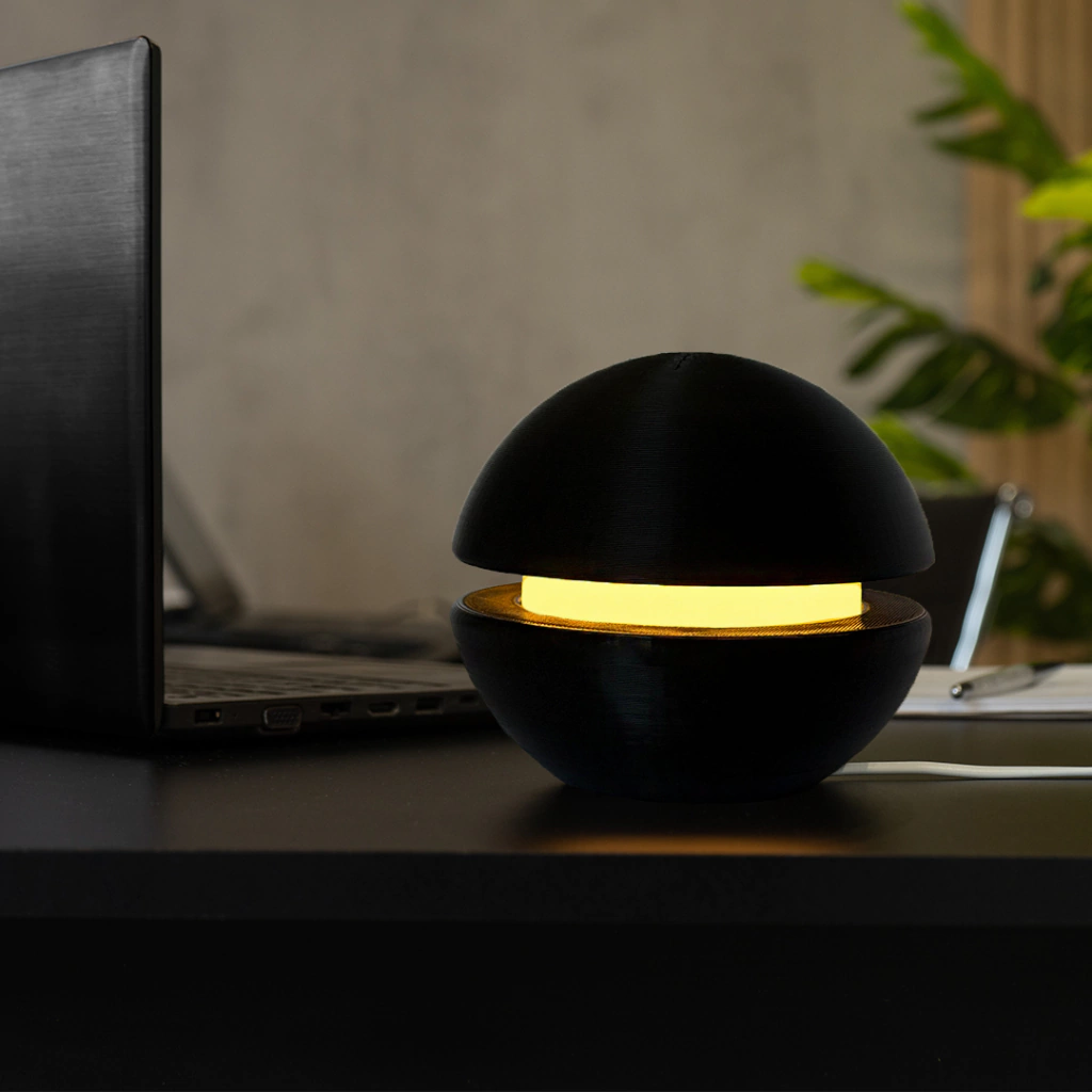 El velador Saturno combina calidez con un diseño moderno y original. Disponible en negro con pantalla color Piedra, incluye lámpara LED cálida de 11W o SMART LED RGB de 9W y cable con interruptor. Su estructura puede abrirse fácilmente con un sistema de rosca para cambiar la pantalla, permitiendo personalización y mantenimiento simple.